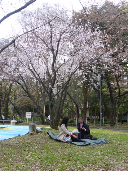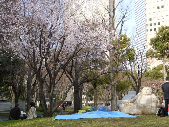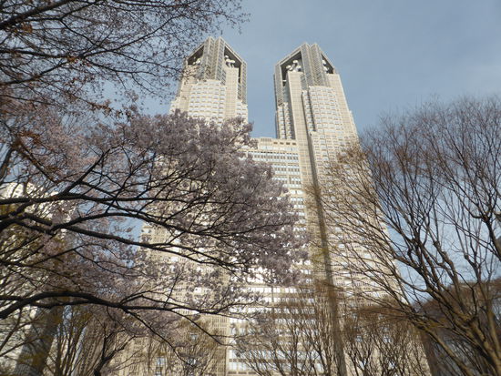 U. und H. wollen ins Hotel. Wir bzw. ich würde gerne die Twintower des Rathauses (TMG=Tokyo-Metropolitan-Government) von der Sonnenseite sehen. WIr trennen uns von den beiden und laufen einmal ums Gebäude herum in den Shinyuku-Central-Park, von dem man einen herrlichen Blick von unten auf die Wolkenkratzer hat, zum Teil mit blühenden Bäumen im Vordergrund.