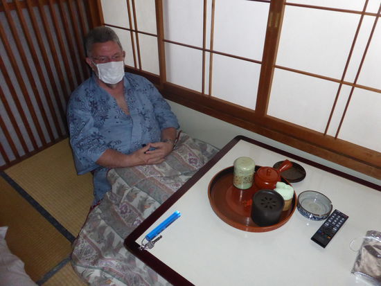 Danach überfällt mich die Müdigkeit und ich beschließe ein Nickerchen zu halten. Nach eineinhalb Stunden (15.30 Uhr) gehe ich in den Onsen – Ulrike tut ihresgleichen. Um 16.30 Uhr treffen wir uns ‚ganz zufällig’ wieder auf dem Zimmer.