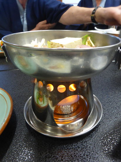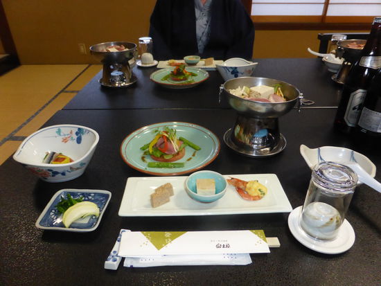 Gemütlich lesen wir noch etwas und freuen uns bei aufkommenden Hungergefühlen auf das Abendessen. Beschreibung wie gestern mit vielen Schälchen und viel Bier und Sake.