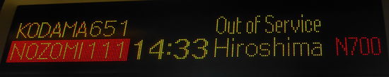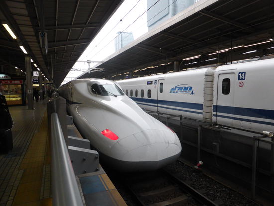 Umsteigen in den Shinkansen Nozomi Superexpress Nr. 111.