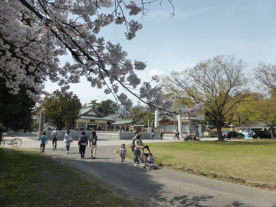 Von oben hat man einen tollen Blick auf das Planetarium und den von Kirschbäumen gesäumten Fluß. H. wartet auf uns während wir hochstratzen.