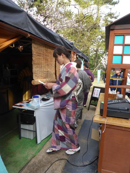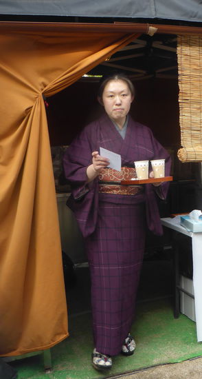 Schließlich gibt es dann doch noch einen Kaffee im Park – allerdings mit enormem bürokratischen Aufwand: ein kimonobekleidete Frau nimmt die Bestellung auf, schreibt einen Bon und drückt eine Rechnung aus, sodann schreibt sie auf beides eine Nummer. Nach geraumer Zeit erscheint eine ebenso gekleidete Frau mit einem Tabett und vergleicht die Nummern, die Reihenfolge wird nicht unbedingt eingehalten, und übergibt nach Austausch von Quittung und Bestellzettel den Kaffee. Zum Trinken benötigen wir insgesamt weniger Zeit.