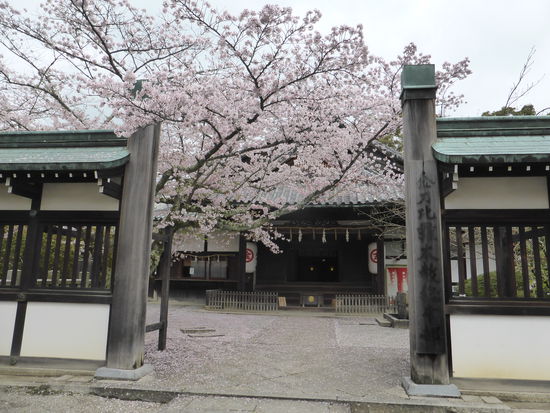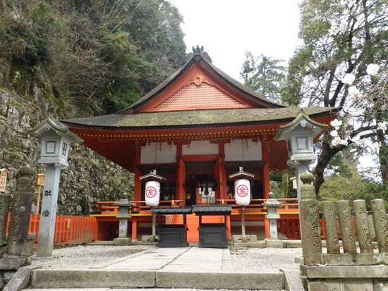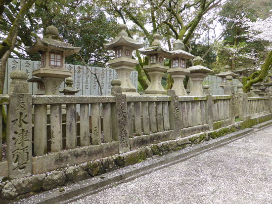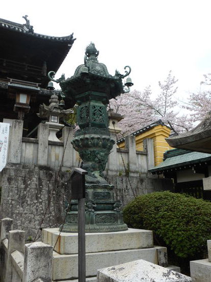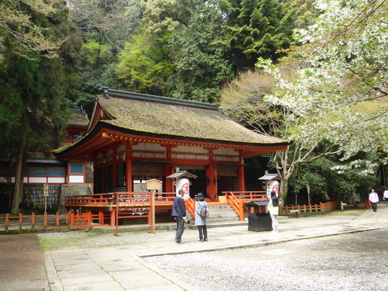 Derweil wartet meine ‚bessere’ Hälfte auf der Ebene des ersten Schreins. Nach Rückkehr beginnen wir zu zweit den Abstieg. Drei kichernden Japanerinnen, die ihre Hände aufhalten, um Kirschblüten aufzufangen, helfe ich etwas nach, indem ich an einem Ast ziehe. Ihr Kichern ist nun nicht mehr endlich.