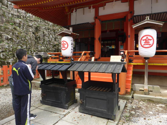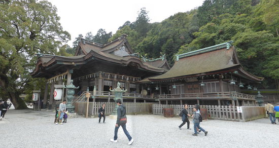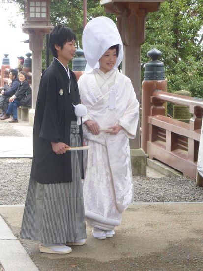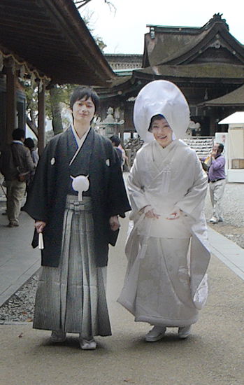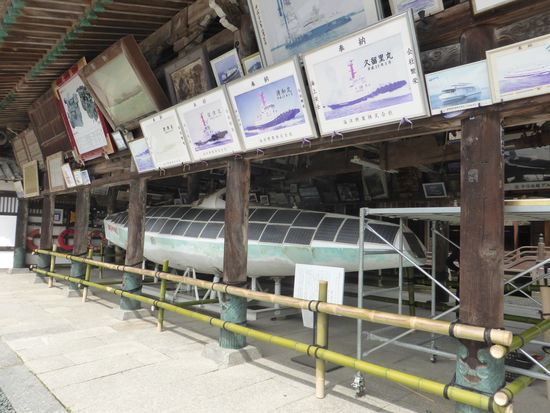 Eine Hochzeit ist leider gerade vorbei, ich kann nur das Brautpaar noch schnell aufnehmen. Etwas fehl am Platze scheinen Bilder von Schiffen, eine riesige Schiffsschraube und ein solarbetriebenes Boot. Doch die Erklärung ist einfach: Kotohira war Pilgerstätte für Seefahrer.