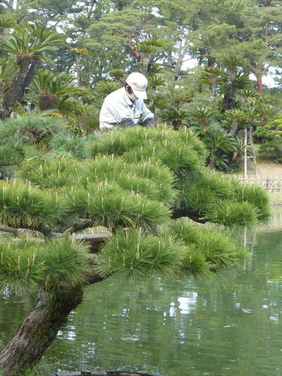 Mehr als 5000 Kirschbäume, tausende Nadelbäume als ‚Großausgaben von Bonsais’ – die Gärtner hocken in den Bäumen und beschneiden sie permanent und geben ihnen die typisch jap. Formen - beherrschen den Park.