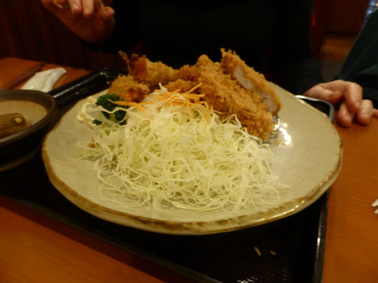 Dafür sind die Speisen im ausgewählten Lokal – mit Panko paniertes Fleisch oder Gambas sehr gut und auch reichlich. Dazu gibt es feinstgeschliffenen Kohl mit einer leckeren Senfdressing (Tonkatsu).