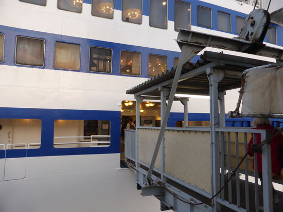 Hatte mich doch gestern ein Schnupfenanfall geplagt und in der Nacht habe ich das laufende Nasenloch mit Tempo verstopft. Erst spät finde ich dann richtigen Schlag obwohl wir ja heute ausnahmsweise schon um 4.00 Uhr aufstehen müssen. Um 5.15 Uhr stehen bereits die Taxen vor der Tür. Auf den Fahrkarten kann man nichts lesen, außer zweimal ‚or’ (Schiff oder Bus) – leider kann ich sie nicht fotografieren, da wir sie beim Betreten des Schiffes schon wieder abgeben müssen.