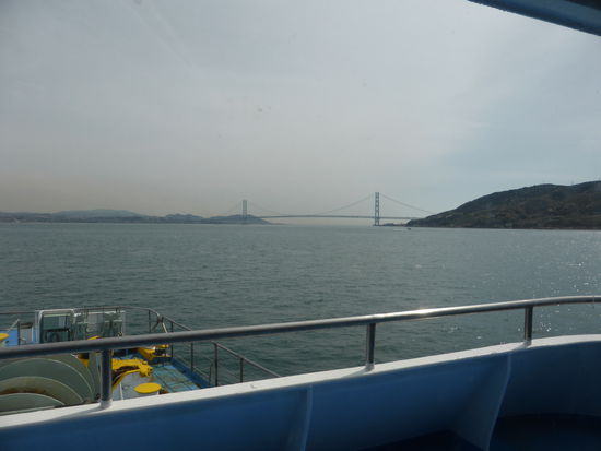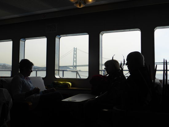 Ein frischer Kaffee ist schnell gekauft, dann wird erst einmal etwas gefrühstückt. Beim Auspacken ist Ulrike etwas geschockt über ihren Brötchenkauf von gestern, es ist nämlich etwas Nutellaähnliches aufgeschmiert. 6.20 Uhr legen wir ab und schippern über Harima-nada-Sea; , alles verteilt sich auf andere Sitze zum Schlafnachholen. Gegen 7.40 Uhr legen wir auf der Shodoshima-Insel kurz an.