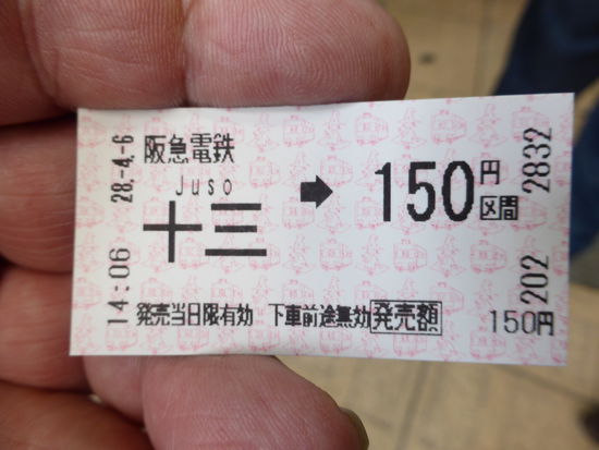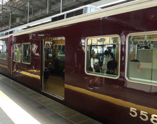 Andreas achtet darauf, dass wir die ersten sind, die das Schiff verlassen, da er von Enge im Shuttlebus weiß, der uns zum Bahnhof der Hanyu-Line bringt. Juso ist die vorletzte Station vor Ueda, beides Ortsteile von Osaka. Juso ist im Prinzip der einzige Ort, dessen japanische Zeichen auch für uns lesbar sind. (Ein Kreuz und darunter drei waagerechte Striche).