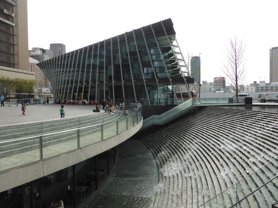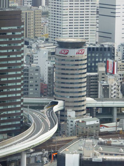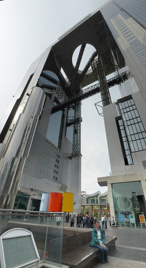 Wir laufen über eine Fußgängerbrücke weiter Richtung Umeda-Skybuilding. Unterwegs sind weitere interessante architektonische Bauwerke zu bewundern.