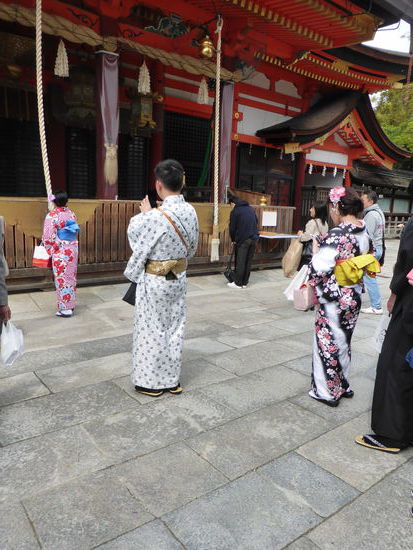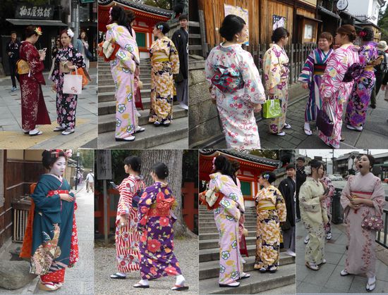 Gion ist ein Geisha-Distrikt. Wir sehen übermäßig viele Damen in Kimonos - man erklärt uns aber, dass viele dieser Damen Touristinnen aus China sind, die ein Japaner direkt an ihrem Gang erkennt. Für uns ist dies kaum möglich, dennoch sind die Damen fotgen.