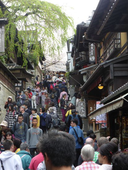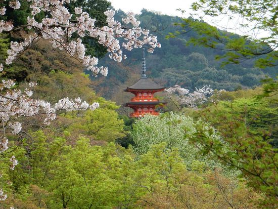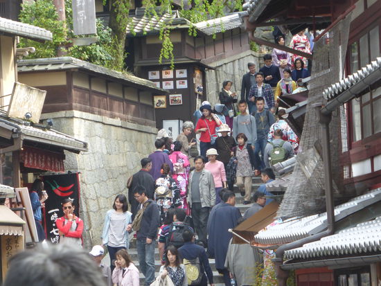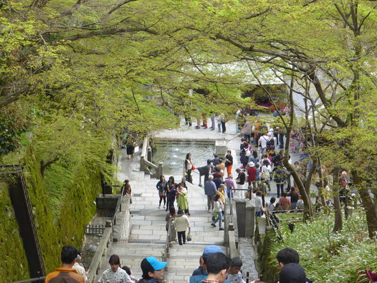 Schließlich erreichen wir den den Kiyomizu-dera (jap. 清水寺). Der Tempel wurde 1994 zusammen mit anderen Stätten zum UNESCO-Weltkulturerbe Historisches Kyōto (Kyōto, Uji und Ōtsu) ernannt. Der Kiyomizu-dera ist der sechzehnte Tempel des Saigoku-Pilgerweges. Die Geschichte des Tempels reicht bis ins Jahr 798 zurück, die heutigen Gebäude wurden allerdings im Jahr 1633 errichtet.