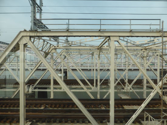 Nach einer mithilfe einer Schlaftablette durchgeschlafenen Nacht habe ich alles Defizit aufgeholt und fühle mich wieder fit. Wir starten zur gleichen Zeit, nehmen den Hankyu-Zug wieder eine Station in die falsche Richtung, damit wir im neu eingesetzten Zug in Umeda Platz finden. Allein die eine Station bringt heute in der Sonne Motive: das Skybuildung von Umeda aus der Ferne, zahlreiche parallele Brücken.
