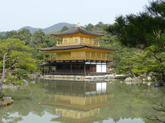 Der goldene Tempel - jap. 金閣寺 - ist ein buddhistischer Tempel im Nordwesten der Stadt. Das drei-etagige Bauwerk ist im zweiten und dritten Stockwerk vollständig mit Blattgold belegt.