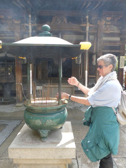 Hauptsächlicher Anziehungspunkt ist der wohl berühmteste Zen-Steingarten aus der Mitte des 15. Jahrhunderts – natürlich wieder in einem herrlich gelegenen Park. Der Andrang ist groß, vor allem da hier wohl zahlreiche europäische Gruppen durchgeschleust werden. Die Studiosusgruppe hat Empfänger mit Ohrstöpseln umhängen, da bei diesem Andrang Erklärungen an eine Gruppe vor Ort nicht mehr möglich sind.