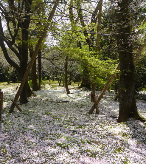 Auf dem Zugangsweg kehren wieder zahlreiche Männer Blätter, Blüten und nicht vorhandenen Unrat weg. An einem großen Plan erklärt uns Andreas, was es zu sehen gibt. Mich beeindrucken bereits am Eingang die Moosteppiche unter Bäumen. Am Ticketschalter bittet man die Regenschirme zu schließen und dann das Ticket zu kaufen!