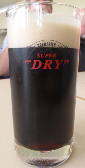 Nach dem eigentlich nicht lohnenden Rundgang, gibt es dann Proben. Im Gegensatz zu unseren schottischen Erfahrungen reichlich. Es ist 11.00 Uhr und das erste eiskalte Bier ist fällig, bis 11.20 Uhr kann man ‚nachfassen’. (‚Leistungstrinken’) Das dunkle ‚dry black’ Starkbier sieht aus wie ein Guinness, auch der Schaum hat ähnliche Konsistenz, der Geschmack ist aber anders. mIr schmeckt es ganz gut – jedenfalls besser als das eiskalte erste Bier. DIe dazu gereichten Knabbereien verführen manche zum Kauf im Shop.