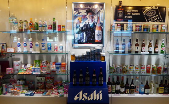 Außerdem erscheint sie recht steril, da viel Theorie (Film und Schemata) geboten wird und zudem ist heute Sonntag und in der Fabrik ‚tote Hose’. Imponierend sind Anzahl und Größe der Stahltanks, die den immensen Ausstoß erklären. Der Konzern hat – wie heutzutage viele andere – mehrere Produktionsstätten und Produkte. Neben Bier werden auch noch Softdrinks in zahlreichen Städten produziert. Unter dem Namen Nikko firmiert der vom Konzern destillierte Whisky. Eines fand ich imponierend: eine Flaschen und Dosensammlung aus der ganzen Welt. Am stärksten vertreten war hier Belgien – selbst unser ValDieu war dabei. Außerdem haben mich die verschiedensten Motiven auf den Asahibier-Dosen angesprochen.
