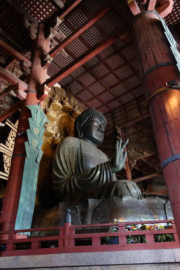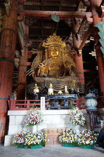 Die Statue des Großen Buddha (daibutsu) stellt Buddha Vairocana (jap. Birushana, bzw. Dainichi) dar. Sie befindet sich in der größten Halle des Tōdai-ji, Daibutsuden (大仏殿), welche 1708 neu aufgebaut wurde, ursprünglich aber noch um ein Drittel größer gewesen sein soll. Die aus Bronze gegossene Figur ist alleine 15 m hoch und 452 t schwer. Die große Buddhafigur wurde im Jahr 751 fertig gestellt. 450 Tonnen Kupfer, 500000 Zimmerleute und 37000 Schmiede wurden benötigt um diese gewaltige Statue im Inneren des Tempels zu errichten.