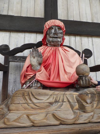 Bemerkenswert ist auch die verwitterte Holzstatue des Arhat Pindola-Bhāradvāja direkt neben dem Tempeleingang. Sie stammt aus dem 18. Jahrhundert. Da sich Pindola mit Zauberei beschäftigt haben sollte, musste er vor dem Tempel bleiben. Die Legende besagt, dass man einen Körperteil der Figur reiben soll und anschließend über den eigenen ebenfalls reiben soll. Dann bleibt dieser Körperteil von Krankheiten verschont.
