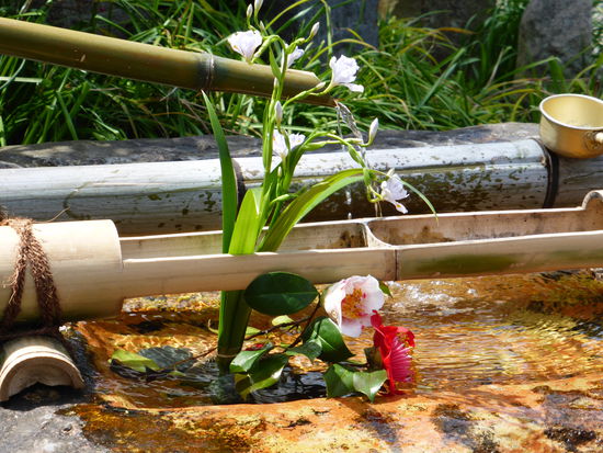 In der langen Einkaufsstrasse zum Bahnhof von Nara sind ausgesprochen hübsche Auslagen mit Blumenarrangements zu sehen.