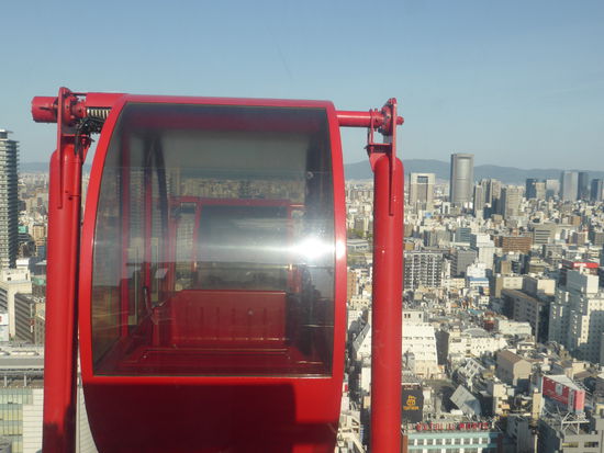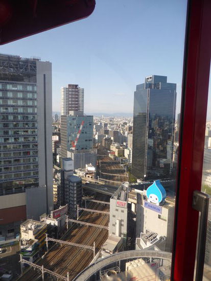 In Umeda angekommen, steuern wir dann das nächste Highlight an. Statt zu horrenden Preisen auf das neue Hochhaus zu fahren, genehmigen wir uns die Fahrt auf dem Riesenrad inmitten eines Kaufhauses. Der Einstieg ist im 7. Stock des Kaufhauses!
