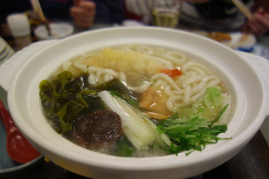 Noch eine Station mit der Hankyu-Line und wir sind wieder in Juso, und können vor dem Abendessen noch die Koffer packen, die heute Abend wieder zum Abtransport bereitgestellt werden müssen. Abendessen im Lokal um die Ecke, Ulrike wählt mein Gericht von vorgestern und ich nehme seafood-hotpot – beides wieder auf dem Gasbrenner.