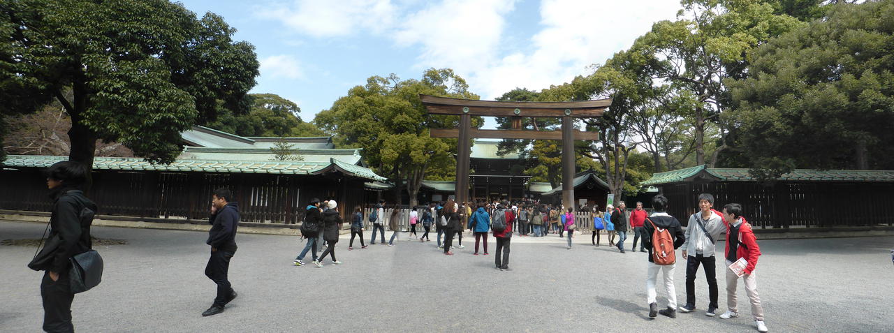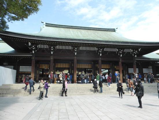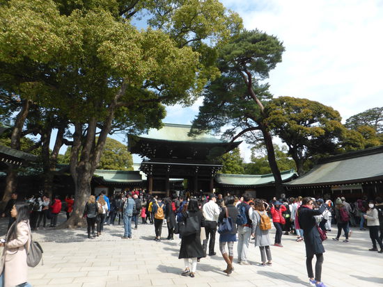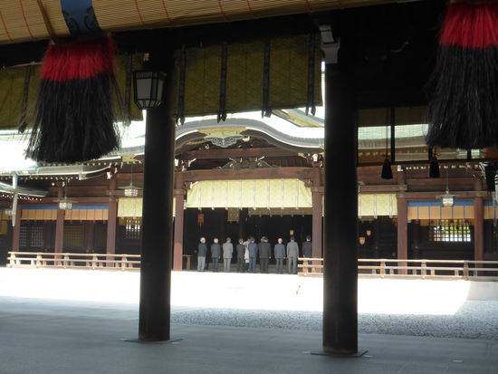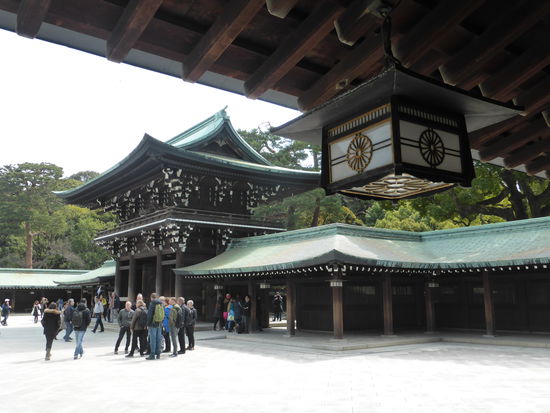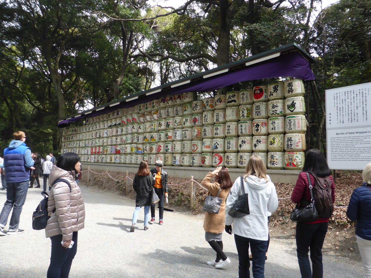Dort laufen wir durch einen wunderschönen Park zum Meiji-Schrein, in dem Kaiser Meiji, der von 1868-1912 regierte, als Gott verehrt wird. Der Schrein wurde 1920 zu Ehren des 1912 verstorbenen Kaisers Meiji und seiner Frau, Kaiserin Shoken errichtet; 100000 gespendete Bäume bilden einen umfangreichen Wald drumherum. Eine Stunde ist etwas zu knapp bemessen, um den Park ausgiebig zu durchstreifen.