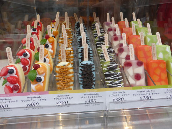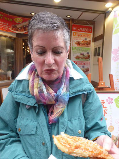 Ein Rundgang durch uniqlo ergibt ein weiteres Kleidungsstück für Ulrike. Langsam gelüstet es uns nach einem Kaffee, doch vorher probieren wir noch ein Yakatori Croissant mit Puddingfüllung.