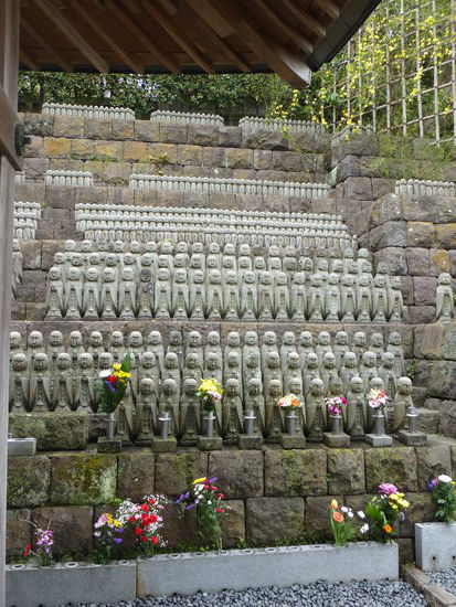 Auf dem Tempelgelände befinden sich Tausende von kleinen Götterstatuen, die den Kindergott Jizo darstellen. Sie werden von Eltern zum Gedenken an ihre toten oder ungeborenen Kinder aufgestellt.
