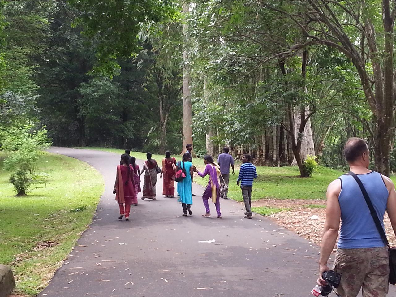 Anschliessend fahren wir in den Royal Botanical Garden, der 1100 Rupies Eintritt kostet, also mit ca. 7€ nicht gerade ein Schnäppchen aber tatsächlich jede Rupie wert ist: Eine riesige Anlage mit verschiedenen Palmenalleen, Riesenbambus (unserer zuhause würde einfach vor Neid erblassen und eingehen) verschiedensten Pflanzen und Grünflächen und jede Menge Tieren. Affen, klar, die flitzen hier überall rum, genauso wie die Ministreifenhörnchen, die ich am liebsten mitnehmen möchte und diverse Echsen aber vor allem hängen hier jede Menge Flying Foxes in den Bäumen, fast so viele wie wir in Indonesien gesehen haben. Die Riesen-Flughunde sind echt laut und permanent unterwegs, man sollte also nicht zu lange mit offenem Mund nach oben starren. Es gibt auch Flughörnchen hier aber wir finden leider keines. Auf dem großen Central Circle, einer Grünfläche in der Mitte, üben sich drei Chinesinnen im Ausdruckstanz während ein vierter filmt...hmm...als sie dann noch anfangen zu singen ergreifen wir die Flucht.