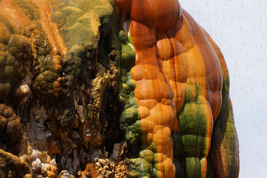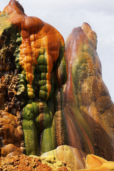 Unser Hautpziel für diesen Tag war wie gesagt der Fly Geysir. Bei unseren Recherchen im Internet sind wir auf diese Attraktion der besonderen Art gestoßen. Bei diesem Geysir handelt es sich um einen künstlich erschaffenen. Vor einiger Zeit wurden Probebohrungen gemacht - mit weniger Erfolg, da sie fehlerhaft durchführt wurden. Durch die nicht sachgerechte Verschließung strömte immer wieder Wasser mit verschiedenen Mineralien an die Oberfläche. Seit einigen Jahres hat er sich zu einem Geheimtipp für Urlauber entwickelt. Für diese Attraktion muss man aber einen langen, fast menschenleeren Weg auf sich nehmen. Von der Interstate zweigt die Straße Nr. 447 in Fernley ab. Von dort aus hat man an die 300 Kilometer auf einer Straße vor sich, auf der man nicht sehr vielen Mensch begegnet. Nach ca. 130 Kilometer erreicht man das beschauliche Nest Gerlach. Dort hat man auf der gesamten Strecke die einzige Möglichkeit zu tanken. Bei Gerlich zweigt dann die Road nr. 34 ab, und man hat noch ca. 20 Meilen (32 Kilometer) vor sich. Hat man dann endlich das Gatter erreicht, überlegt man es sich doch noch einmal, ob man dieses Grundstück betreten soll. Überall wird davor gewarnt, das Privatgrundstück zu betreten. Laut Instagram und diversen Reiseberichten ignorieren diese Warnung aber zahlreiche Urlauber - also auf geht's. Ständig mit einem Gefühl erwischt zu werden, haben wir dieses tollen Geysir doch erreicht. Der Nervenkitzel hat sich definitiv gelohnt!