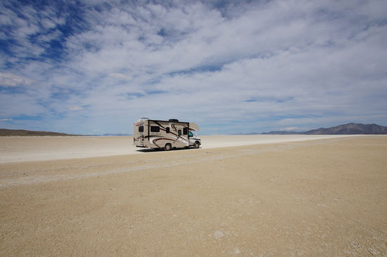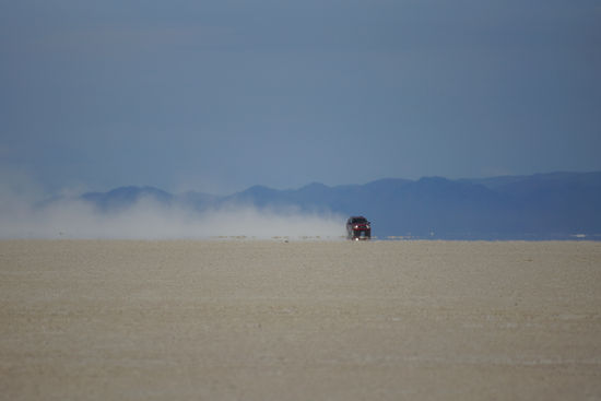 Wenn man sich schon in diese Gegend verirrt hat, muss man auf die "Black Rock Desert" fahren. Dort gibt es Trails, auf denen man kreuz und quer über den harten Sand düsen kann. Wir haben es uns natürlich auch nicht nehmen lassen, und sind ein Stück weit in die Wüste vorgedrungen.
