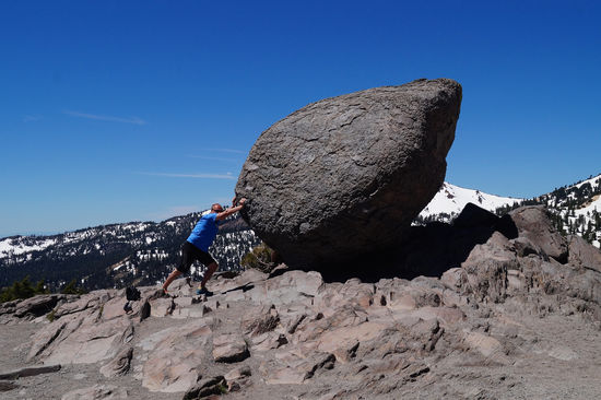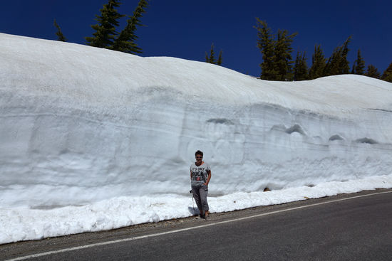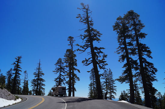 Nach einer Nacht bei den Hippies - die Camphosts auf unserem Campground hatten sich alle sehr liebe man hörte Trommeln und alles war schön - haben wir uns in Richtung Lassen Vulcanic National Park gemacht. 1915 hatte sich am Lassen Peak eine gewaltige Explosion ereignet, die Asche an die 200 Kilometer in östlicher Richtung verstreute. Auf einer gut ausgebauten Straße kann man den Park bequem durchqueren. Am höchsten Punkt der Besichtigungsroute (2.600 Meter) gab es noch ordentlich Schneemassen. Und in diesem Schnee haben wir auch tatsächlich Bärenspuren entdeckt - leider aber keine Bären selber!