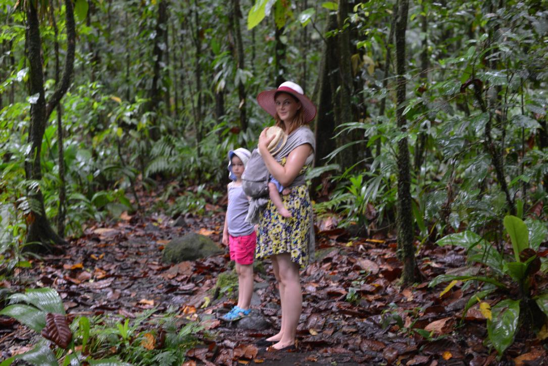 Trotz Regen und Wolken beschließen wir die Route de la Traversée zu nehmen und an der Maison de la forêt einen Pfad in den Dschungel zu laufen. Als wir die Straße entlang kurven ziehen immer wieder dichte Nebelschwaden vorbei bei denen ich oft an Isabel Allendes Nebelmenschen denken muss. Wir parken an der Maison und gehen über eine Hängebrücke zum Wald. Erstes Hindernis geschafft, denn ich habe leider ziemlich mit Höhenangst und mit wackeligen Brücken habe ich es auch nicht. Das wird mich heute verfolgen… Also fragen wir die Mäuse, ob wir den langen oder den kurzen Weg gehen wollen - und einstimmig wollen sie, kaum zu glauben, den langen Weg gehen. Zwischen riesigen Blättern und Bäumen und unbekannten Geräuschen fühle ich mich winzig. Der Weg ist matschig und rutschig und mehr als einmal fliegen die Mäuse über Wurzeln. Die 50 Minuten des Weges ziehen sich gefühlt ewig dahin. Endlich hören wir den Fluss wieder und haben es geschafft. Die Schuhe stehen vor Dreck, uns läuft der Schweiß und alle sind fertig. Dabei ist unser „Programm für heute noch gar nicht durch, denn es ist erst 11 Uhr und wir wollen noch in den Zoo de Guadeloupe bei Marmalles. Obwohl wir oft gelesen haben, dass es nichts besonderes dort ist, wollen wir uns davon selbst überzeugen und hinterher noch Pommes essen mit den Kindern. Also wieder ins Auto und zurück auf der Route de la Traversée - 5 Minuten später parken wir vor dem Zoo und beschmieren uns mal wieder mit Anti Brumm und Sonnencreme. Der Park ich wunderschön angelegt mit einem Holzpfad, einer Hängebrücke (seufz) und einem Baumwipfelpfad (den sind Antonia und Philipp allein gegangen). Immer wieder tauchen Gehege auf und man sieht viele tolle Tiere. Wir hatten das Glück, eine Vorführung zu erwischen, und haben viele Erklärungen bekommen (über Jaguare, schwarze Jaguare, Pumas und Schildkröten). Auf dem Spielplatz hat Jannik dann den Weg nicht zu mir zurück gefunden und ich musste Marlene bei einer fremden Frau parken und dann in den als Hochseilgarten angelegten Spielplatz. Aber zum Glück musste ich nicht weit, denn die Kinder der anderen Frau hatten Jannik schon gefunden, das Problem erkannt und zu mir zurück gebracht - so süß und so lieb!