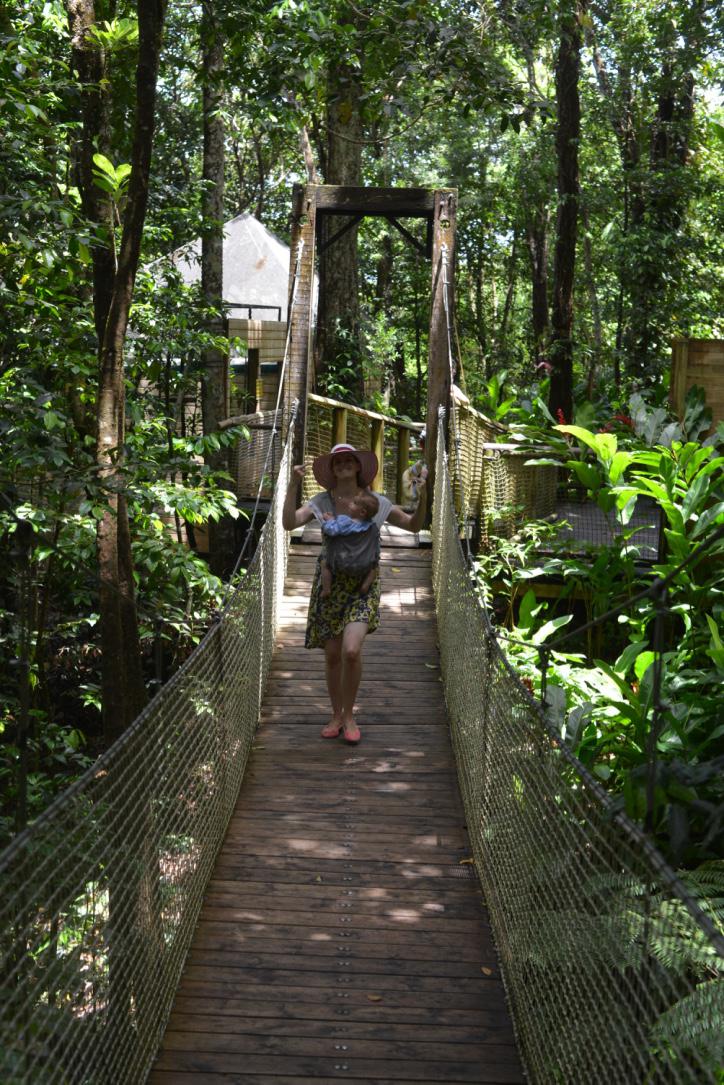 Antonia und Papa in den Baumwipfeln, Mami bleibt freiwillig bei den kleinen beiden... Hängebrücken und so...