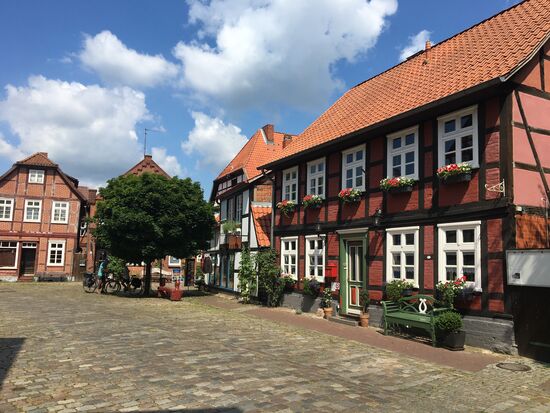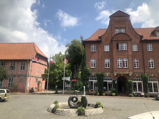 Heute machen wir ein kleinen Sprung nach Hitzacker, soll so hübsch sein. Elbe wie immer, wieder 5cm gestiegen, alles ok. Hafenmeister erwartet uns an der Drehbrücke der neuen Hafeneinfahrt, ganz neue Stege, neues Sanitärhäuschen, alles top. Das Dorf ist auch toll, so haben wir uns das vorgestellt: pittoresque Häuserzeilen, schnuckelige Läden, Buchhandlung, Eisdiele und belebt mit radfahrenden Touris. Wir grübeln immer noch, warum es in den ehemals ostdeutschen Städtchen (nur 20 kms entfernt) -bei gleicher Bausubstanz wie hier im ehemaligen Zonenrandgbiet Westdeutschlands - so viel Leerstand gibt und es so, öde und so wenig belebt ist. Nach dem Einkaufsbummel kocht Anne leckere Nudeln mit Erbsen, Schafskäse uvm. Herrlicher Abend (sehr warm, ca. 29 grad), Wind leider auch eingeschlafen. Kein Verkehr im Hafen wegen der geschlossenen Drehbrücke.