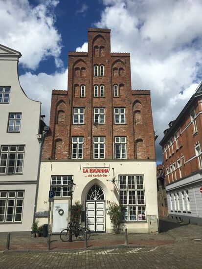 Gemütliches Frühstück auf Deck und -täglich grüßt das Murmeltier- zack regnete es wieder. Aber immer wieder folgt auf Regen Sonnenschein, so auch heute. Kurz nach 12 konnten wir trocken zum Einkaufen radeln .Zurück am Schiff, Sachen verstaut und nächsten Regenguss abgewartet. Die Vorhersage prophezeite uns eine längere Regenpause und wir machten uns zu Fuß auf in die Stadt. Leider haben montags Museen, Kirchtürme und viele der hübschen kleinen Geschäfte in Lübeck geschlossen,. Wir schlenderten kreuz und quer durch die Stadt, bogen immer wieder in die alten Gänge ein ,bestaunten die vielfältigen Giebel und Fronten der alten Kaufmannshäuser und Speicher und hatten gegen Abend die Insel auf der Lübeck liegt gequert und umrundet. Morgen stehen dann Museum, Kirche und Shopping an.