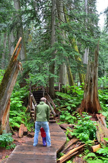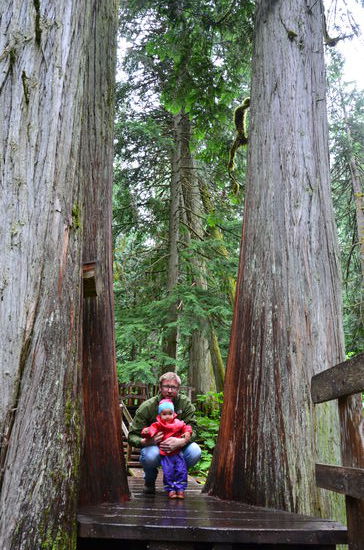Danach hat sich das Wetter etwas gelichtet und wir haben uns frohen Mutes auf den Weg zum prämierten "Giant Cedars Boardwalk" gemacht. Allerdings hat es auf der Fahrt direkt wieder einmal zu regnen angefangen. Nachdem wir uns auf dem Parkplatz einen Mittagsschlaf gegönnt haben gings dann los. Man geht auf Holzstegen durch einen ursprünglichen, urwaldähnlichen Zedernwald. Ursprünglich deshalb, weil dieser Wald sich selbst überlassen wird und im Gegensatz zu den anderen Wäldern in den Nationalparks nicht aktiv gepflegt wird (z.B. werden umgefallene Bäume nicht entfernt). Teilweise sind die Bäume 500 Jahre alt. Der Weg war wirklich unglaublich schön und absolut "begehenswert"!