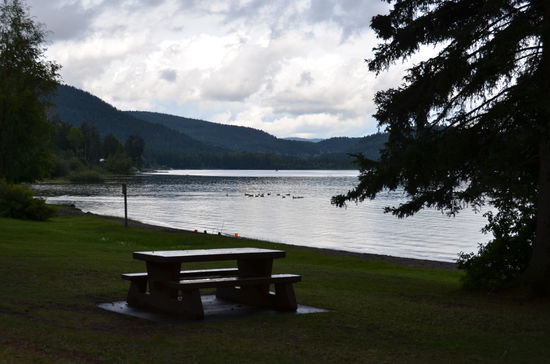 Am nächsten Tag gings im strömenden Regen zum nächsten Campingplatz am Paul Lake. Ausnahmsweise war im Laufe des Tages auch mal Sonne vorhergesagt, aber Pustekuchen, wie man schön auf den Bildern sieht.