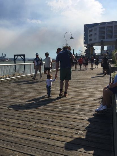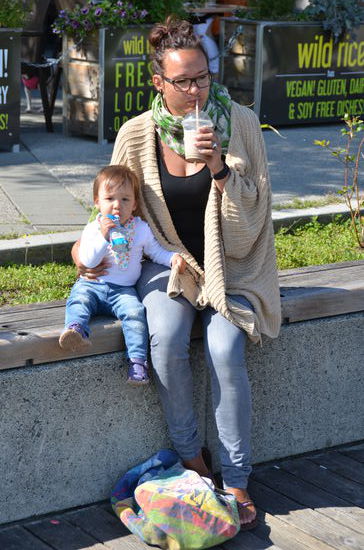 Am Fraser River entlang führt ein super schöner Promenaden-Weg mit Cafes, Restaurants und Spielplätzen ca. 3km um New Westminster herum. Dort haben wir uns ein wenig die Zeit vertrieben, flaniert, Eiskafee getrunken und einfach nur die Sonnenstrahlen genossen. Elisa fands auch toll, da hier fast jeder mindestens einen Hund hat Zum Abschluss gings abends in ein Seafood-Restaurant, wir wollten ja nochmal was anständiges zu essen haben, bevor wir ins Selbstversorgerleben übergehen.