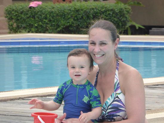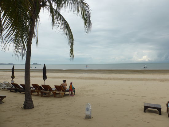So, nun war es aber Zeit für einen Ausflug! Wir bekamen frühzeitig eine Info, dass freitags von 8:30 Uhr bis 17 Uhr der Strom hier abgestellt wird wegen Bauarbeiten außerhalb. Da bot sich ein Ausflug an einen schönen Strand an. Wir entschieden uns für eine 40 minütige Autofahrt Richtung Pranburi und haben uns für den Tag einfach ins Hotel Dolphin Bay Resort eingemietet. Das Hotel ist speziell für Familien mit Kindern. Es liegt an einem wunderschönen einsamen Strand. Die günstigste Zimmerkategorie haben wir für umgerechnet 25 Euro gebucht und dann konnten wir sämtliche Einrichtungen des Hotels nutzen. Toller Pool mit Kinderpool, schöner neuwertiger großer Spielplatz und den sauberen Strand mit Liegen, Auflagen und Sonnenschirmen. Elisa hat tolle Muscheln gesammelt! Außerdem hatten wir für Bastians Mittagsschlaf ein Zimmer mit Klimaanlage und konnten abends vor der Rückfahrt noch in Ruhe duschen... Alles in allem ein toller Tag auch bei stark bewölktem Himmel.