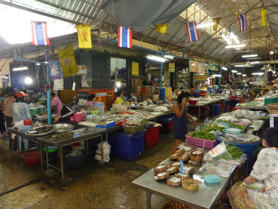 Chatchai Market... ich wusste warum ich mich zu diesem Sightseeing-Punkt mit Bastian ausklingte. Wie sich hinterher herausstellte war es auch gut so! Beworben im Reiseführer wird der Chatchai Market als Tagesmarkt in Hua Hin für die Thais. Ein authentischer Markt, nichts für zarte Gemüter. Sascha hat Elisa morgens nach dem Frühstück bearbeitet und ihr den Markt schmackhaft gemacht, dass da vielleicht das Ein oder Andere für Sie als Urlaubsmitbringsel hängen bleibt. Elisa liebt shoppen und einkaufen, genau wie ihr Papa, also sind die zwei nach dem Frühstück ganz Feuer und Flamme ab zum Chatchai Market. Ich hab mich glücklicherweise gut herausgeredet das Bastian zu früh wach war und müde ist und unbedingt nochmal vormittags schlafen muss (was er auch tatsächlich nochmal machte!). 2 Stunden später kamen die beiden glückseelig und freudestrahlend zurück. Hätte ich sie beim Betreten der Wohnung nicht gesehen, ich hätte sie durch die geschlossene Tür bereits RIECHEN können. Ach du sch... Wie haben die zwei denn gestunken!!! Hatten Sie sich zwischen die Fischstände gelegt!? Zuerst traf ich bei beiden auf völliges Unverständnis... Es würde nicht stimmen. Bastian wurde sofort falscherweise verdächtigt die Hose voll zu haben... Noch völlig im Glück versunken von ihrem gemeinsamen Papa-Tochter Trip haben die beiden überhaupt nicht gemerkt dass sie gen Himmel stinken nach Fisch und Moder und was weiss ich was. Es war grausam... Gemerkt haben sie es selbst erst als ich sie an ihren Kleidern riechen ließ. Der Gestank war überall, auch auf der Haut und erstrecht in den Haaren. SOFORT hab ich sie abgeordert unter die Dusche. Die Kleider habe ich KOMPLETT in die Wäsche. Als Sascha frisch geduscht und neu angezogen war hab ich ihn nochmal an den "alten" Kleidern riechen lassen. Das war ein Spaß, er konnte sie selbst nicht mehr riechen und wir haben uns Tränen gelacht. Aber als wir dann gegen Abend nichtsahnend ins Auto stiegen um Essen zu fahren hat es uns ein 2. Mal umgehauen... Das Auto mit dem sie vormittags unterwegs waren und das den ganzen Tag verschlossen in der Sonne schmorte duftete auch wunderbar nach "Chatchai Market". Der Geruch war in die Sitze eingezogen und hatte in der Sonne sein Aroma entfaltet. Also erstmal Auto lüften bevor es losging.