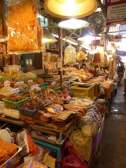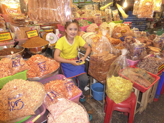 Neben Lebensmitteln, Fisch und Fleisch gibt es tatsächlich auch Kleider, Spielzeug (wovon Sascha für Elisa natürlich auch was gekauft hat und zwar die zwei Frozen-Figuren Elsa und Anna), Haushaltswaren und CD`s (hier hat Sascha doch tatsächlich endlich seinen Thai-Reggae Song von Job2Do entdeckt!).