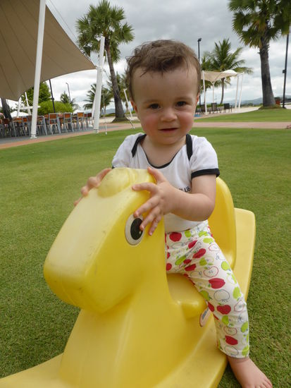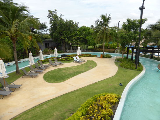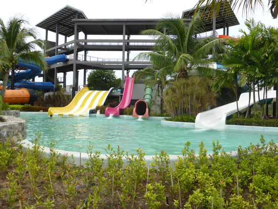 Der Park ist nicht allzu groß aber sehr schön angelegt und super sauber. An einem Dienstag in der Regenzeit war natürlich kaum was los. Herrliche Verhältnisse. Wenn in dem ganzen Park 100 Leute waren, dann waren es viele über den ganzen Tag verteilt. Das Wellenbecken hatte geschlossen, haben wir am Eingang erfahren, wegen Wartungen, deshalb war der Eintritt sogar um 50% reduziert von normalerweise 600 Baht auf nur 300 Baht (7,50€ pro Erwachsener). Die Kinder waren komplett frei! Das Wellenbecken hätten wir sowieso mit Elisa nicht genutzt, unsere Schissbiene wäre da niemals rein! Am Kinderplanschbecken haben wir uns platziert und haben den Tag ausgiebig genossen. Sascha konnte natürlich weniger wegen seinem Finger machen, aber er war auch mal im Wasser! Essen und Getränke dort waren auch für Parkverhältnisse absolute Traumpreise. 0,5 Liter Wasser 0,50€, Pat Thai Nudelgericht 2,50€, Hamburger mit Pommes keine 4€ usw... Essen und Getränke darf man keine mit reinnehmen, aber wer da sein Zeugs noch selbst mitbringt dem ist sowieso nicht zu helfen, oder!? Schön war's, Elisa ist gegen abend heulend aus dem Park weil sie unbedingt noch bleiben wollte. Völlig fertig waren unsere zwei Kleinen... Haben sie dort ausgiebig im Wasser getobt und auf dem Babyspielplatz mit anderen Kindern gespielt.
