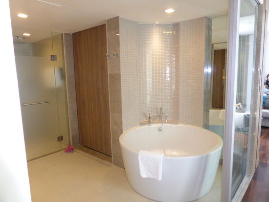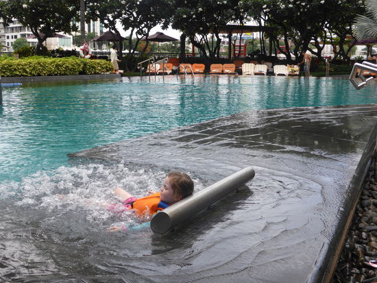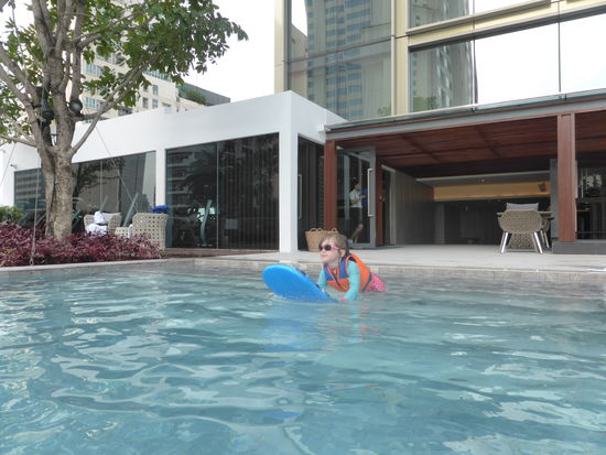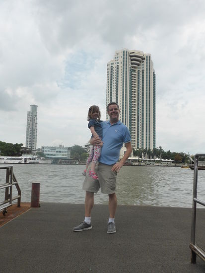 Als wir im Shangri La Hotel ankamen und endlich unser Zimmer hatten war sie etwas enttäuscht das sie kein eigenes Schlafzimmer hatte. Sie wollte lieber ihr eigenes Zimmer...na ja, das war für uns im Shangri-La leider finanziell nicht machbar Dafür wurde sie durch die grandiose Aussicht von unserem Balkon und aus der Badewanne auf den Chao Phraya Fluss entlohnt und war auch sofort besänftigt.