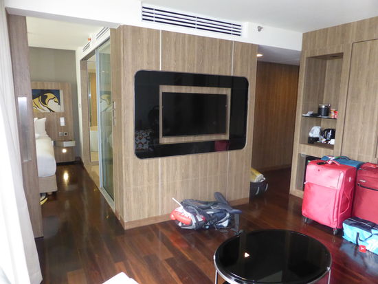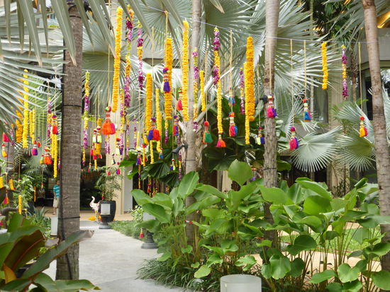 Ursprünglich war ja nur 1 letzte Nacht in Bangkok geplant bevor es zurück in die Heimat geht. In Hua Hin haben sich dann unsere Pläne doch noch kurzfristig geändert und etwas mehr ACTION musste noch her für die letzten Tage. Irgend ein kleines Highlight fehlte uns zum Schluss und mein Göttergatte meinte wir sollten uns für die letzten Tage noch ein Top-Hotel am Flüsschen gönnen... Nix ist leichter als das, also hab ich den Laptop mit meinen zig gespeicherten Hotelsuchmaschinen angeschmissen und uns kurzfristig im Shangri La Hotel in Bangkok für 3 Nächte eingebucht. Für die letzten zwei Nächte hatte ich übrigens ein paar Tage zuvor schon das neue Novotel Sukhumvit 20 gebucht. Das Hotel hat ganz neu eröffnet und befindet sich noch in der sogenannten Soft Opening Phase (Eröffnungsphase), die Familiensuite mit Frühstück und spätem Check Out war ein top Eröffnungsangebot und da habe ich zugeschlagen...