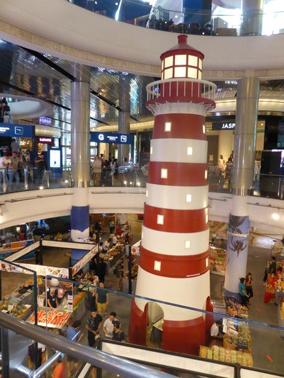 Das Einkaufszentrum ist wie ein Flughafenterminal aufgebaut und hat bekannte Welt-Städte als Motto auf den verschiedenen Etagen.