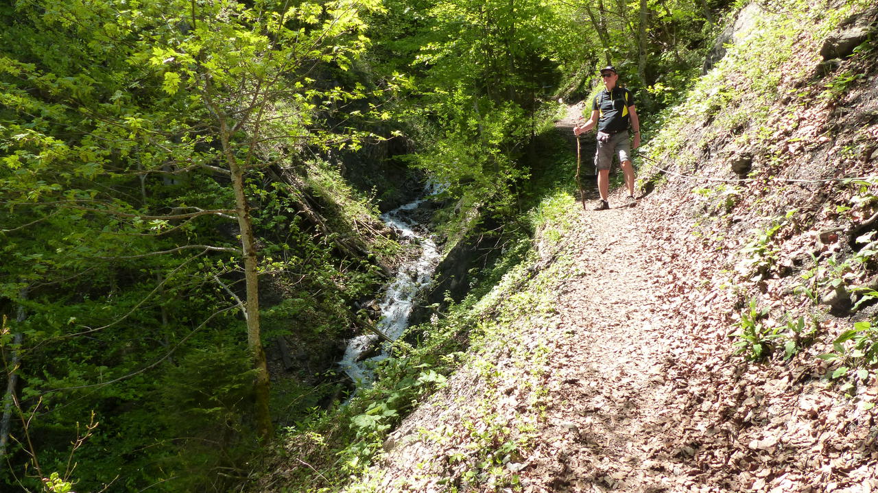 Obwohl nur mit Turnschuhen bekleidet an den Füßen, geht es bergab ordentlich voran.