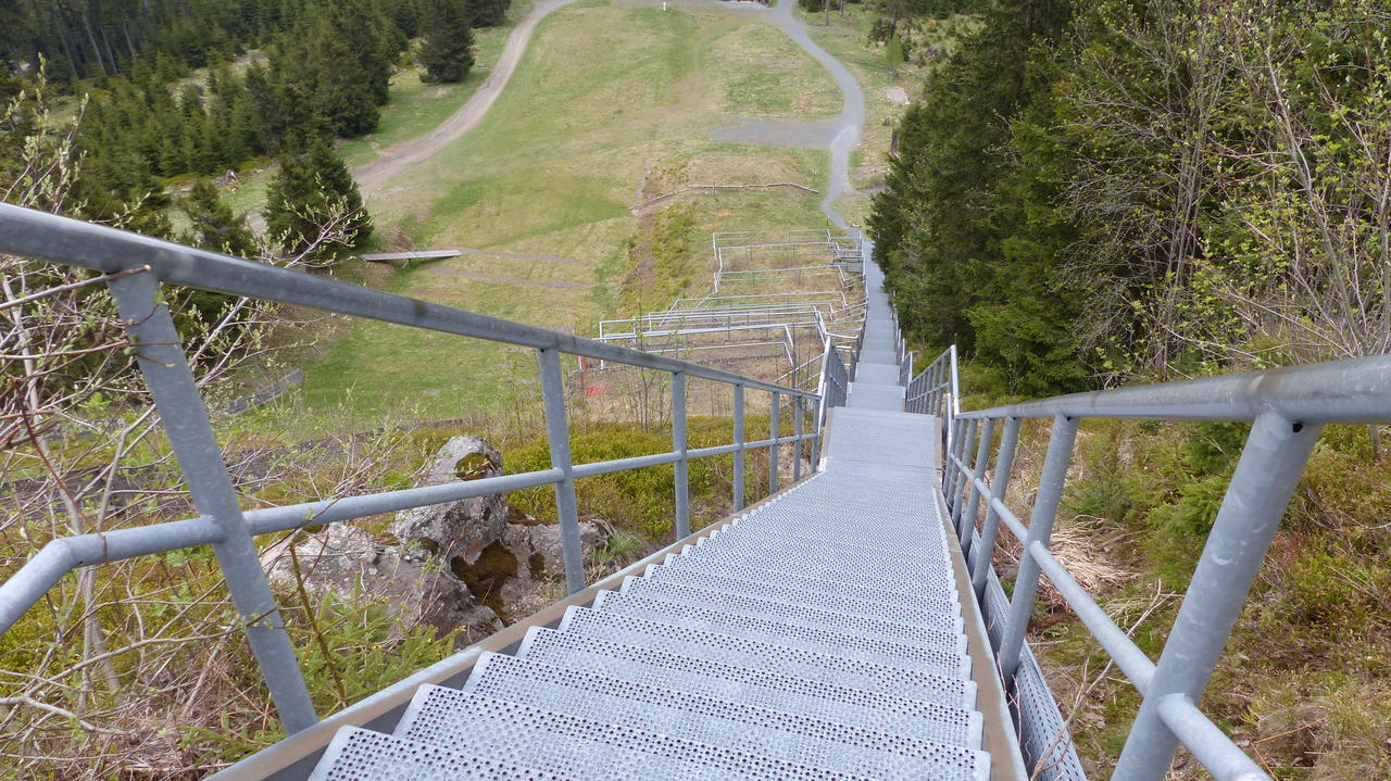 Plötzlich stehen wir oben vor der Sprungschanze, die wir heute früh von unten bestaunt hatten.